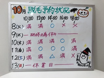 こんにちは(^^)/今週の脱毛予約状況です!! 今週土日、台風...